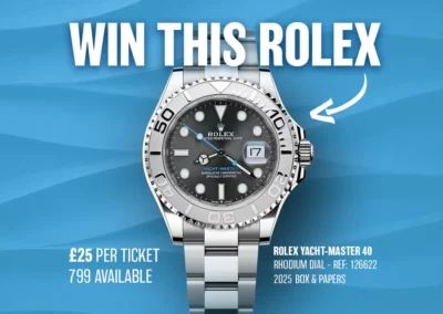 Win this ROLEX YACHT-MASTER 40- RHODIUM DIAL- Model: 126622 – 2025 With Box & Papers- In MINT Condition.